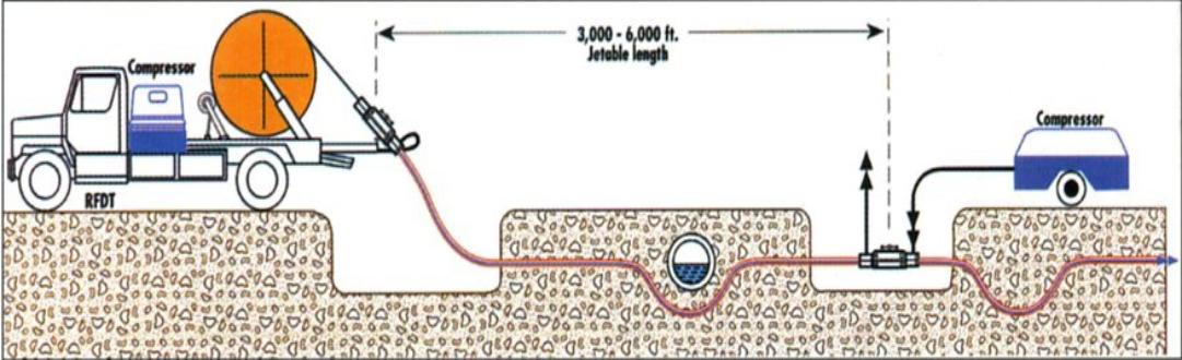 Jetting is an internationally patented method for installing fiber optic cables in duct utilizing a balance between a low-strain pushing force and high